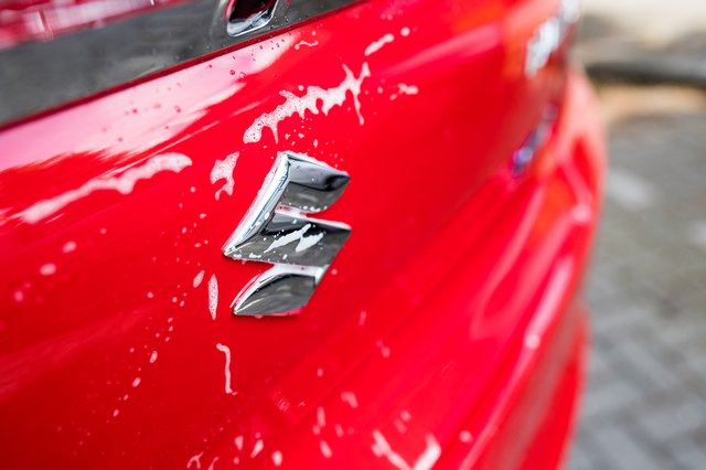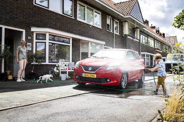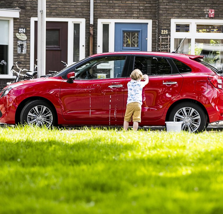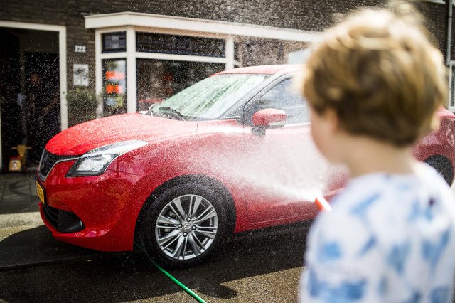 Was je auto in de schaduw voor het mooiste resultaat. Door de zon opdrogende zeepresten blijf je zien als de auto droog is.